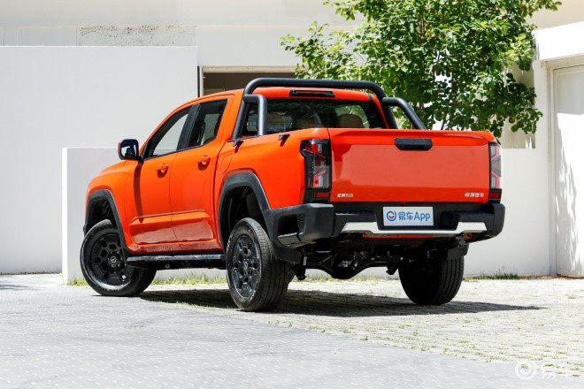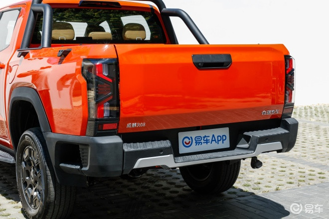 新车的车尾遵循了皮卡车型的经典设计,即大面积的矩形货箱门搭配纵向的尾灯。不过为了凸显运动感,威麟R08采用了十分立体的LED尾灯造型,灯组内部的折线元素很自然地把尾灯分隔开了三个部分,看起来更有设计感。